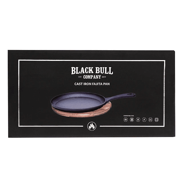 Iron cast. Medidas: 27.5 cm x 15.5 cm x 4.5 cm. Base: Madera Acacia. Iron Cast: Material fierro fundido con capa de nitruración que protege la superficie de la oxidación. (requiere proceso de curado). Resistente hasta 537°C. Indicado para: Cerámica, inducción, parrilla, gas y eléctrico.